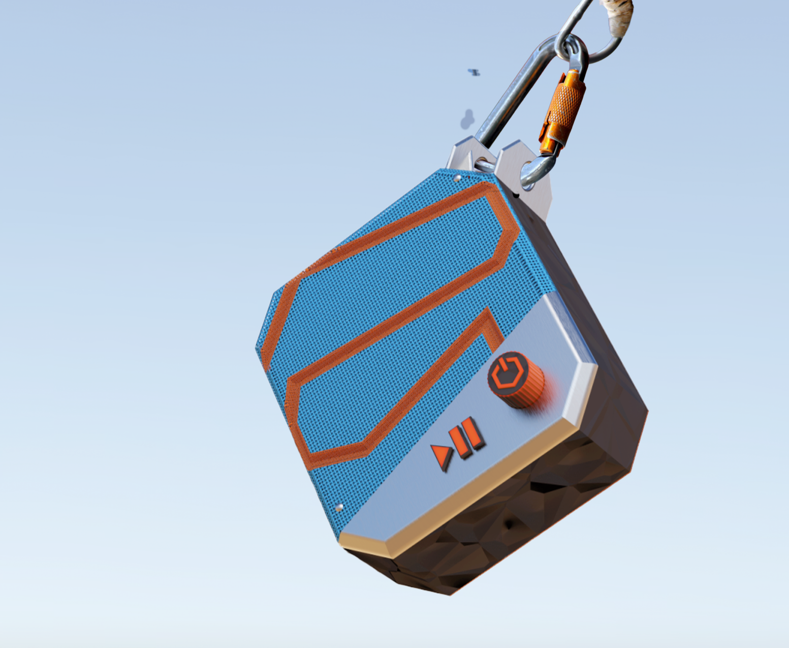 A rugged portable speaker concept focused on outdoor use, durability, and intuitive controls, developed through sketching, CAD modeling, and refined CMF decisions.