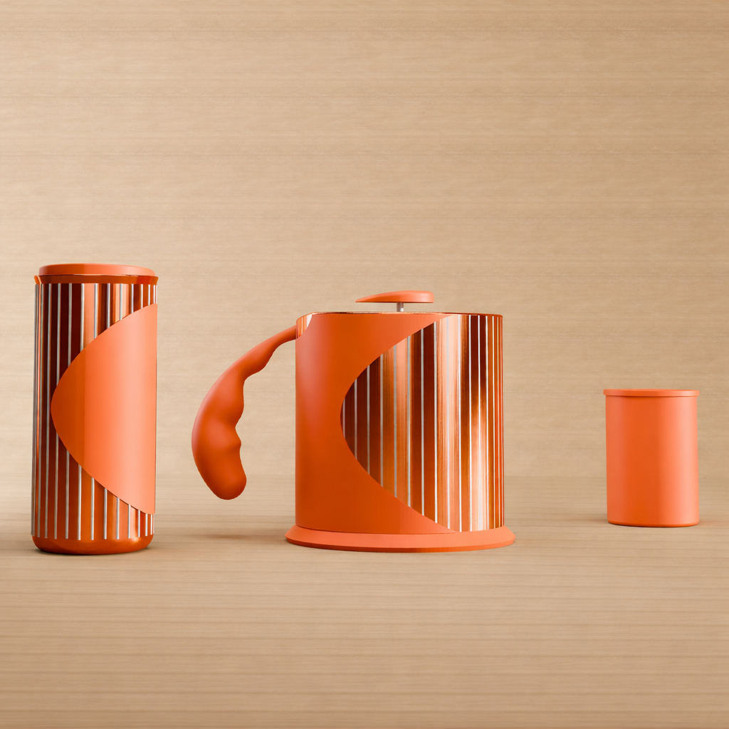 A cohesive coffee set focused on form language, proportion, and material expression through CAD and rendering.