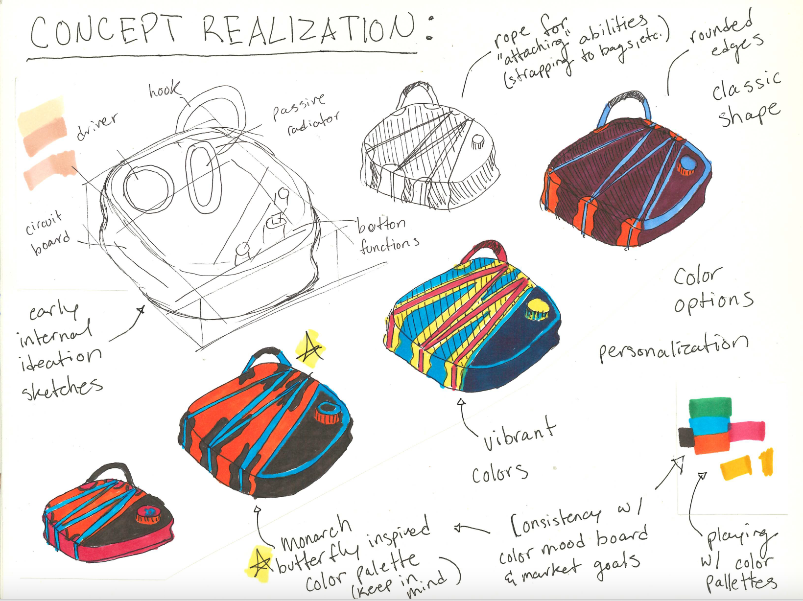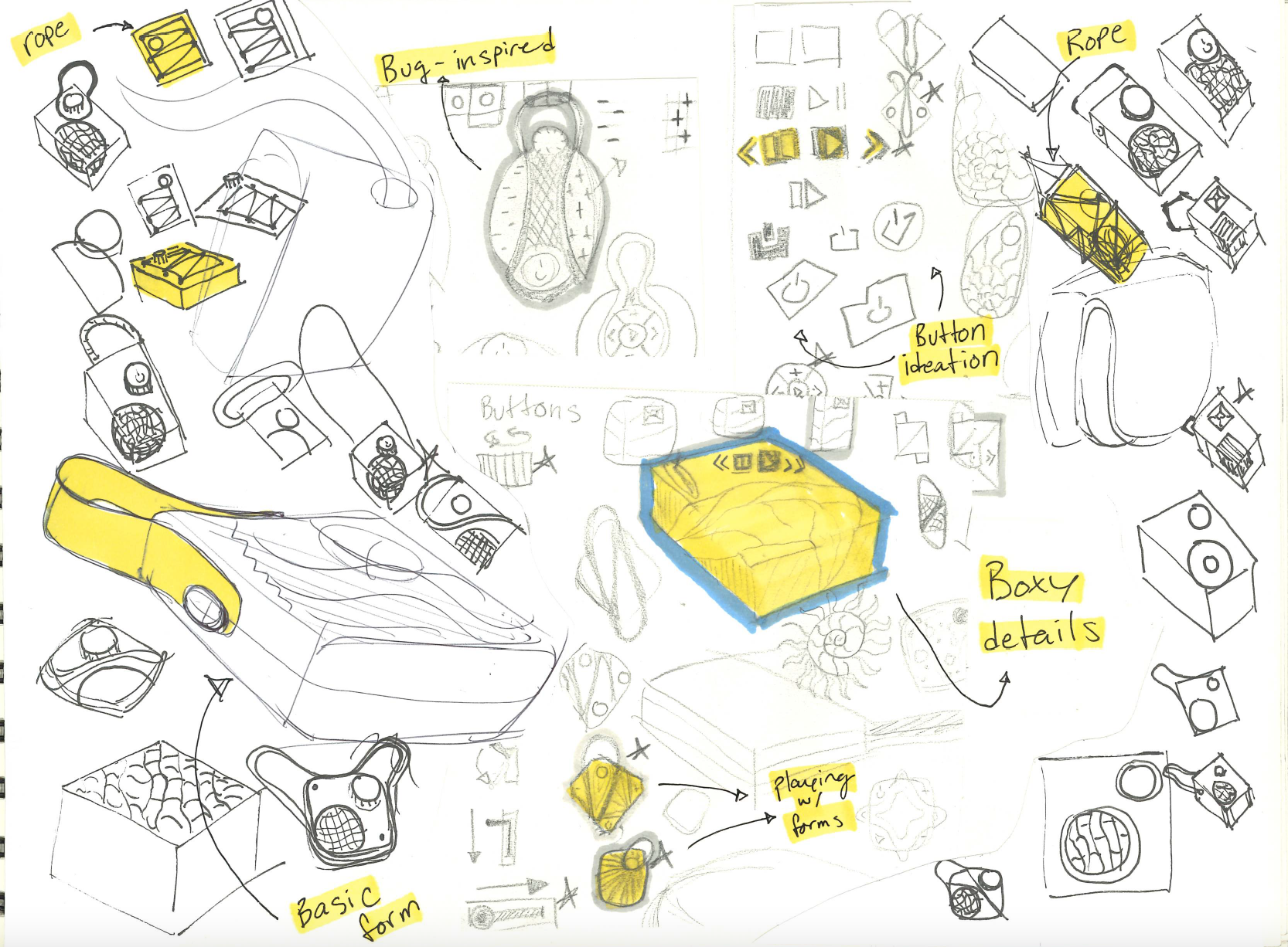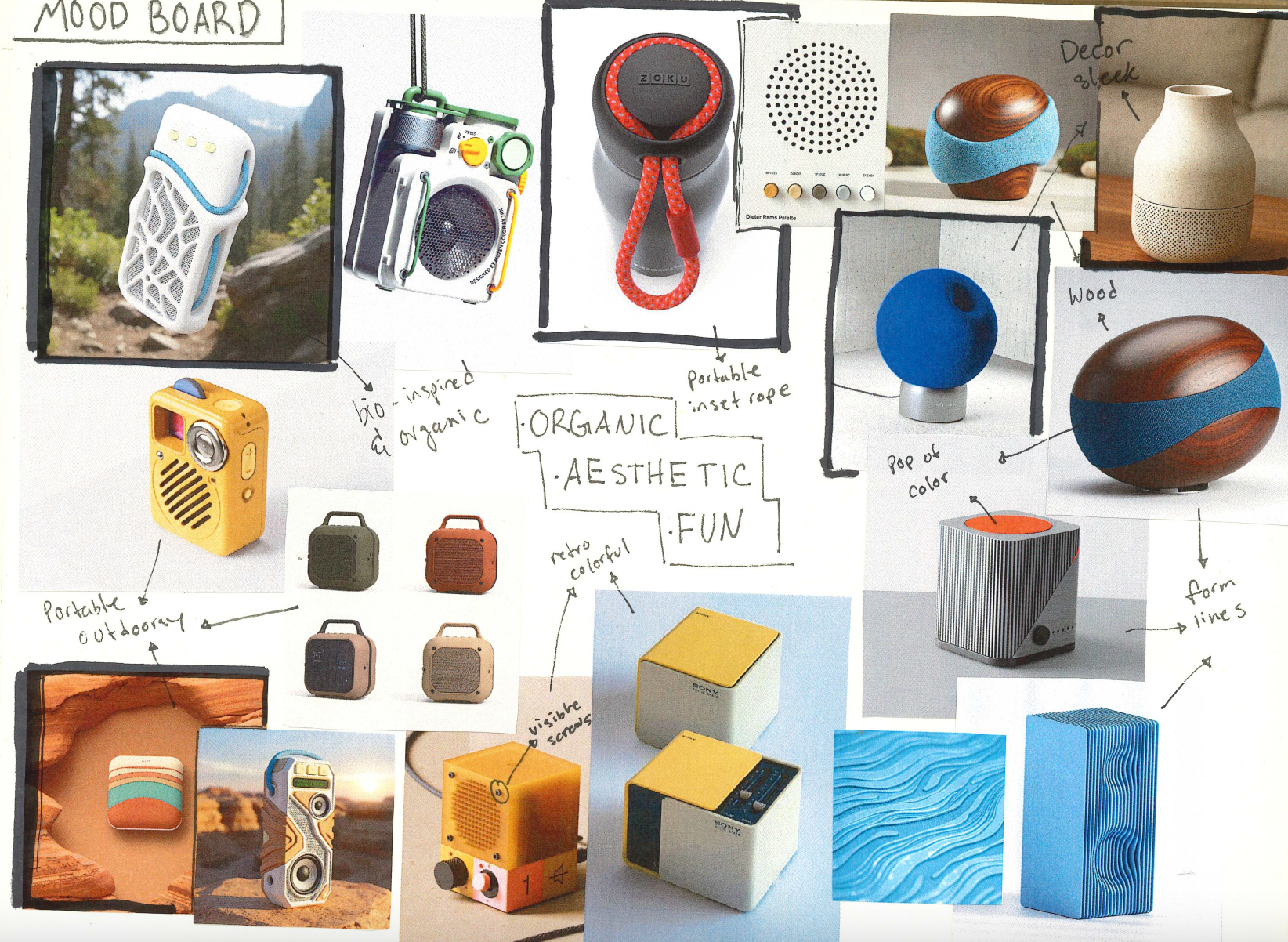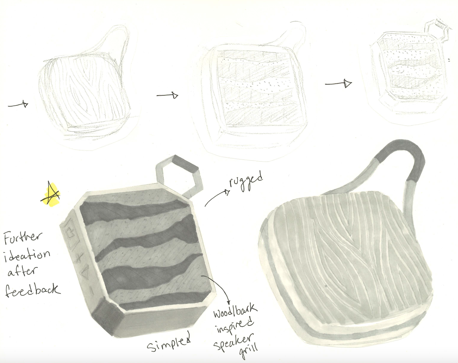 Exploring form with quick thumbnail sketches - focus on simplicity and reinventing classic speaker forms.