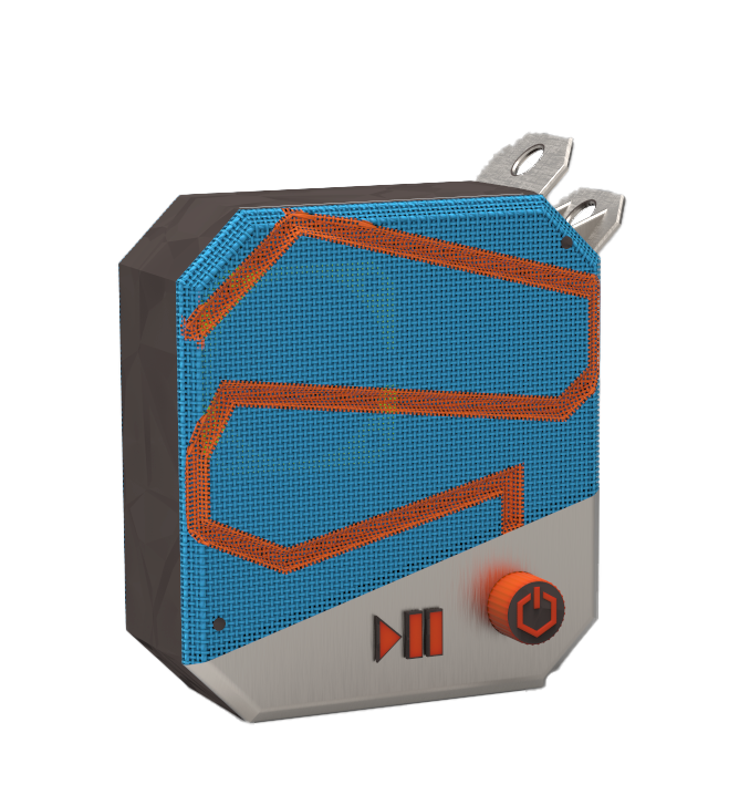 A rugged portable speaker concept focused on outdoor use, durability, and intuitive controls. Developed through sketching, CAD modeling, and refined CMF decisions.