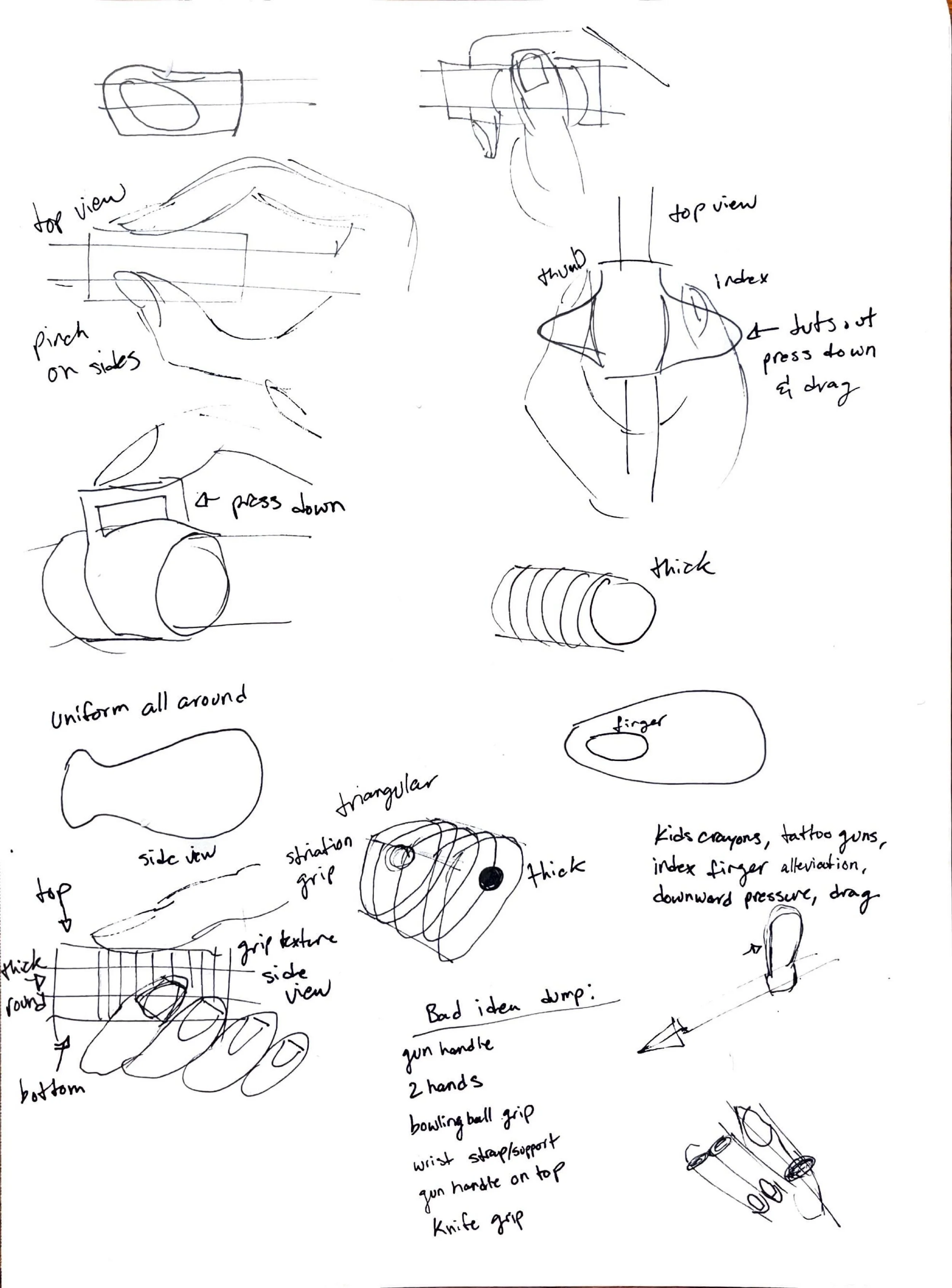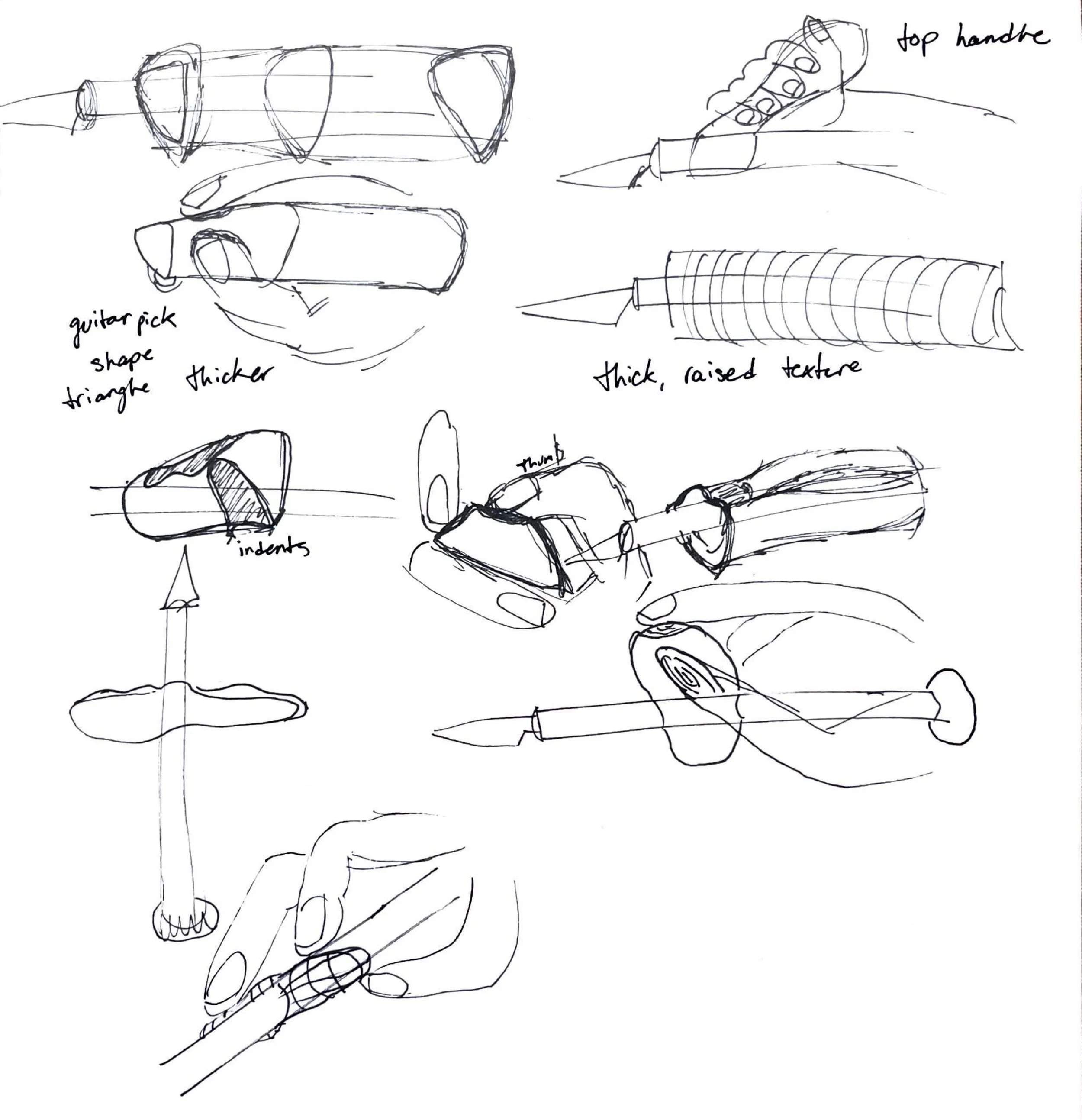 3 unique concepts with varying levels of conventionality - exploring designs that open the hand and widen the grip to prevent cramping.