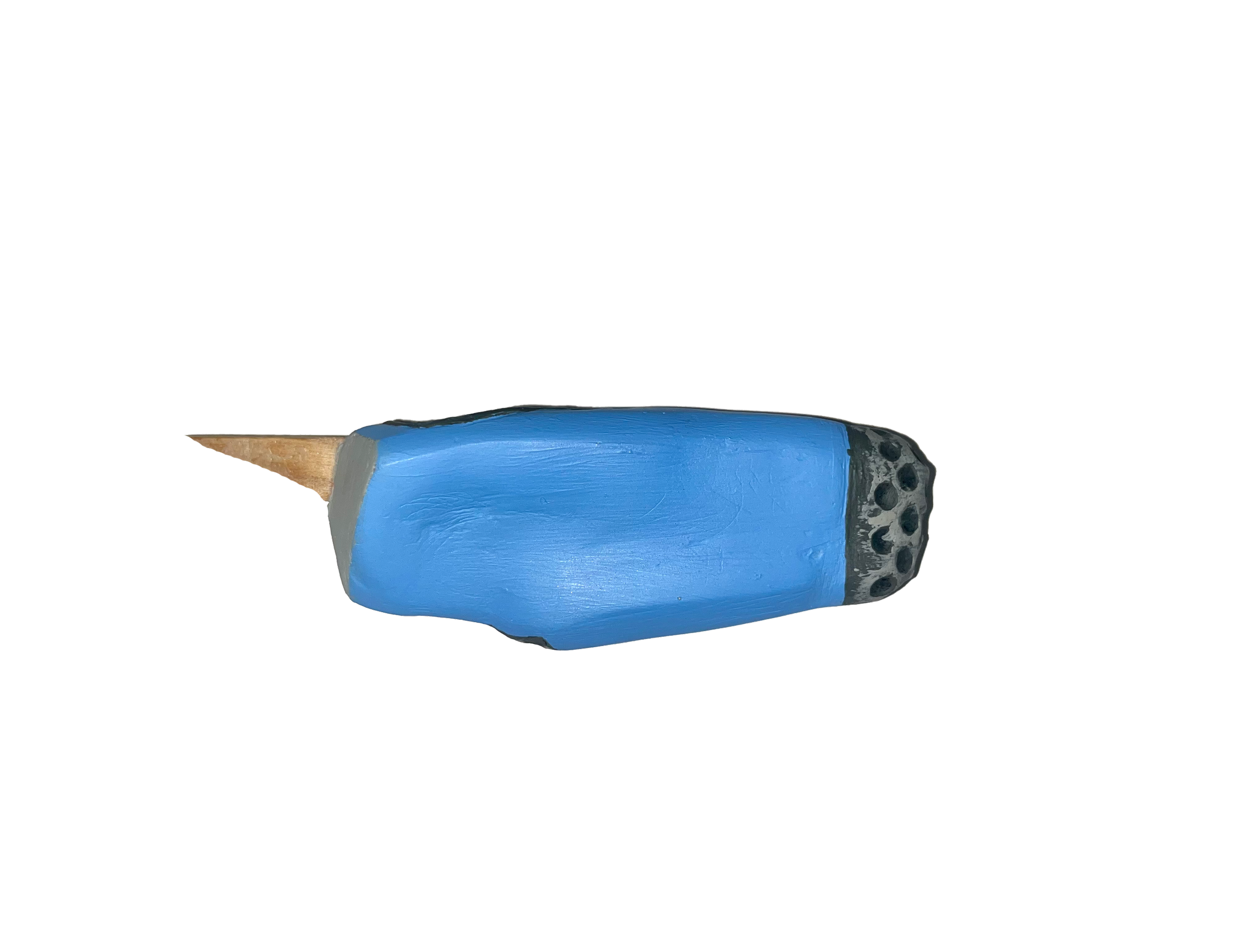 Soft form and blue silicone finish contribute to a calm feel, and dimpled texture adds grip and signifies finger placement, adding to the safety of the device.