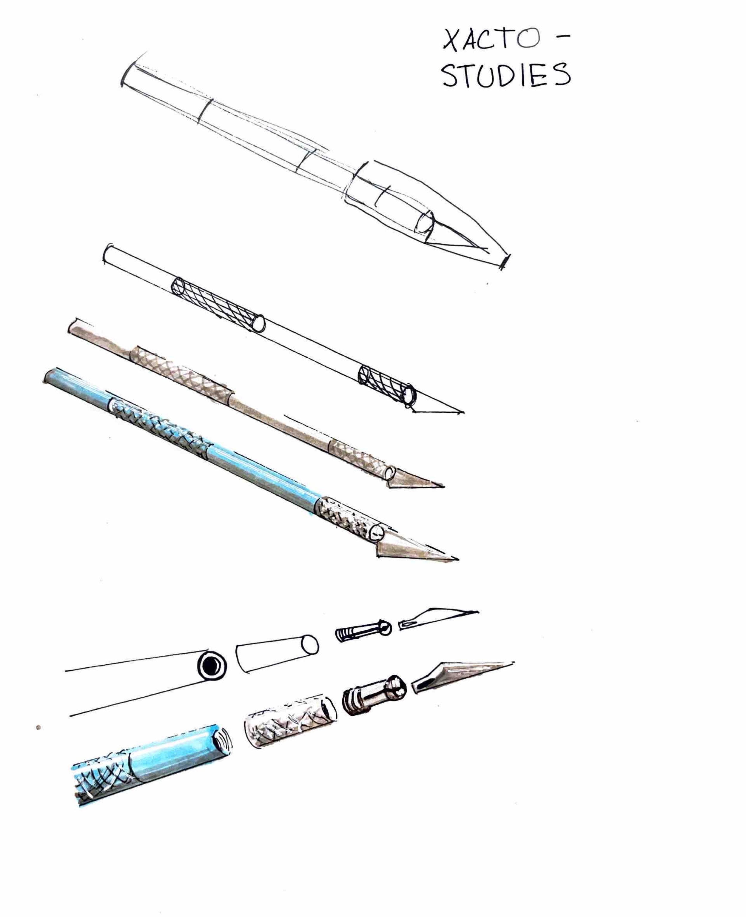 Researching precision knife pieces, and conducting minimal user testing to determine the pain-points of the standard handle.