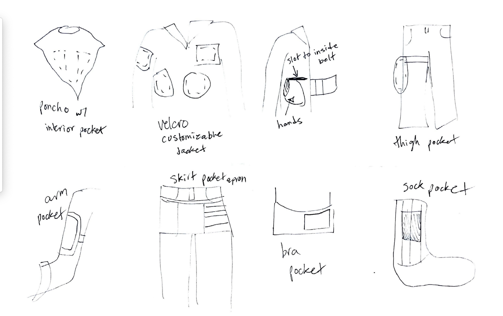 30 second “lightning round” ideation - exploring alternative pocket concepts