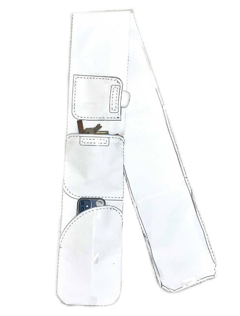 A functional soft-goods pocket system exploring materials, construction, and on-body usability through prototyping and contextual testing.